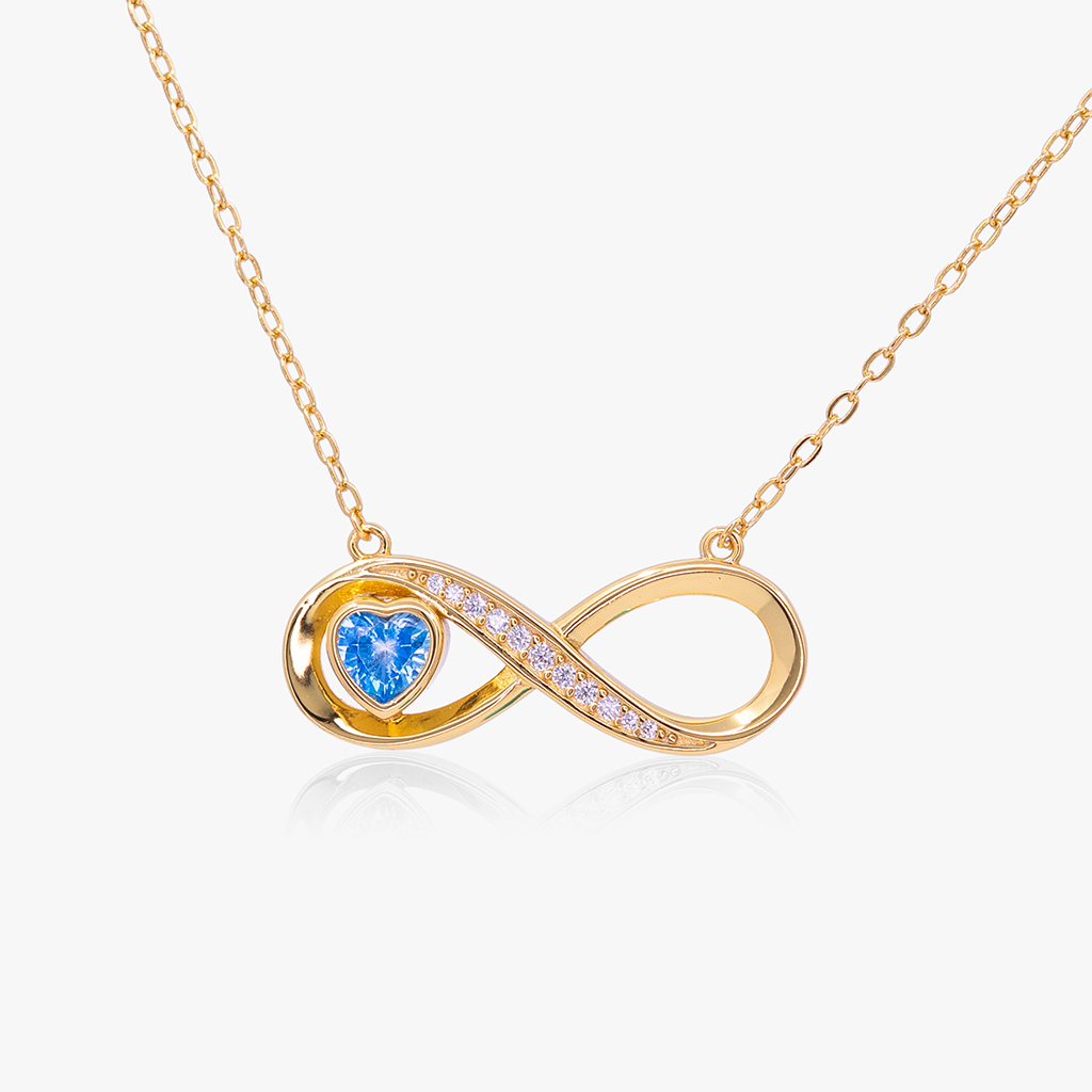 Vyjádřete svou lásku náhrdelníkem z pravého stříbra pozlacený 24karátovým zlatem, spojení nekonečna a věčné lásky v podobě křišťálu v brusu ve tvaru srdce a 11 zirkony s briliantovým výbrusem dodávající oslnivý třpyt.